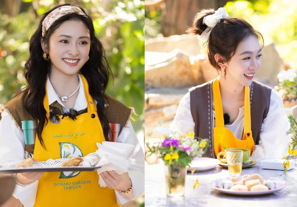 A peaceful and quiet place where the two Chinese actresses completed their mission: Jiang Yan helped in the kitchen, and Shen Yue participated in serving customers at Donabo Botanical Gardens in Tangier.