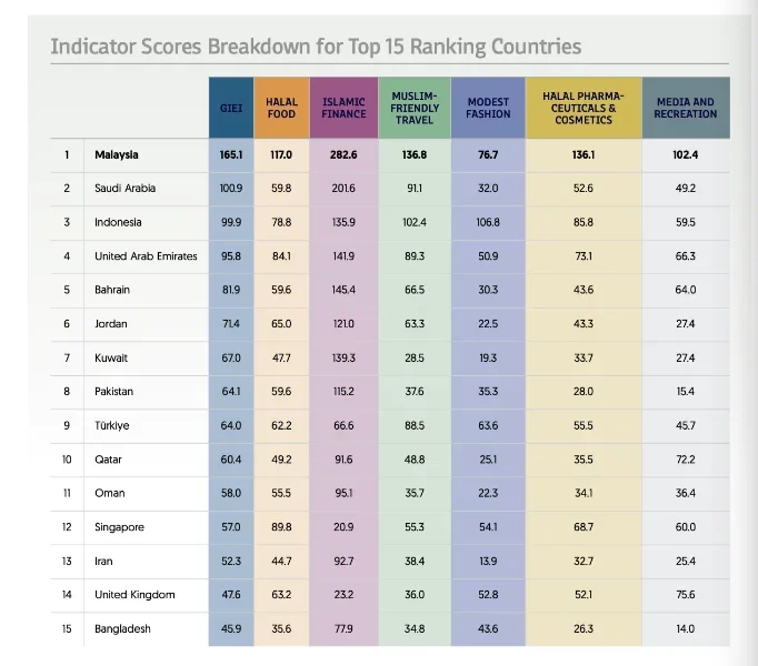 Malaysia remains the leading national ecosystem that supports Islamic economy business activities, followed by Saudi Arabia in 2nd place and Indonesia in 3rd place.